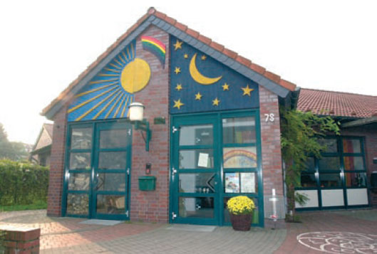 Diese städtische Tageseinrichtung für Kinder besteht seit 1971. In vier Gruppen werden für 95 Kinder stabile Beziehungen erlebbar gemacht. Das " familienergänzende " Arbeiten geschieht in drei Kindergartengruppen und einer großen altersgemischte Tagesstättengruppe für Kinder im Alter von drei bis zu 14 Jahren.